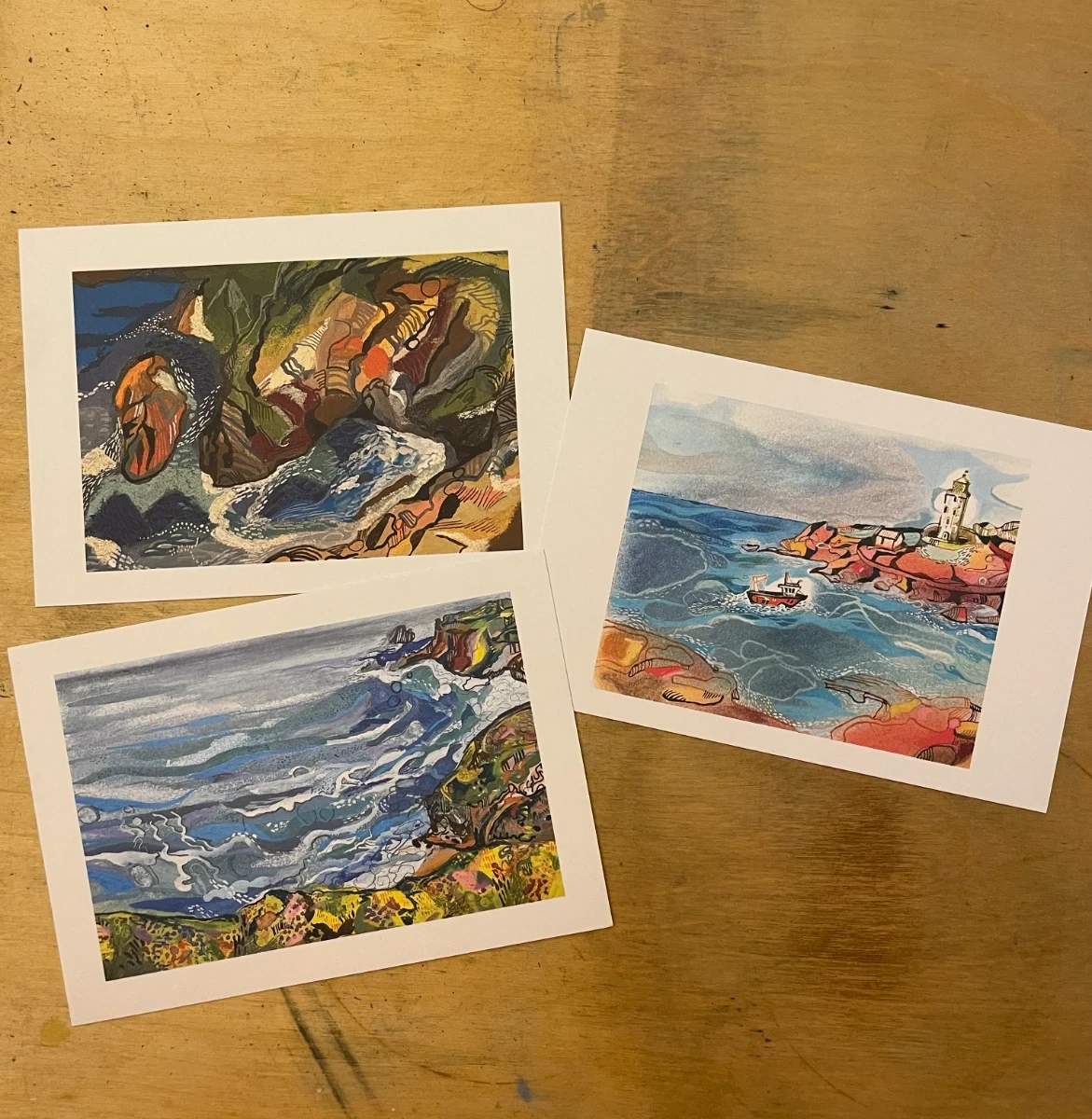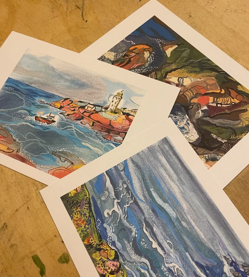 3x Postcards: 'Cliffs', 'Charlottes' and 'Godrevy'